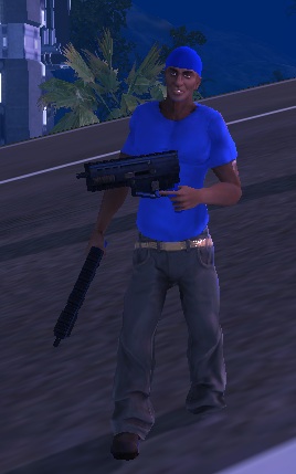 RT human, blue shirt, bandana, two pistols (ID: 5451)