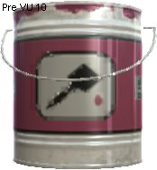 A paint can containing colored paint. Paint is used to color various crafted items, for example clothes or furniture.